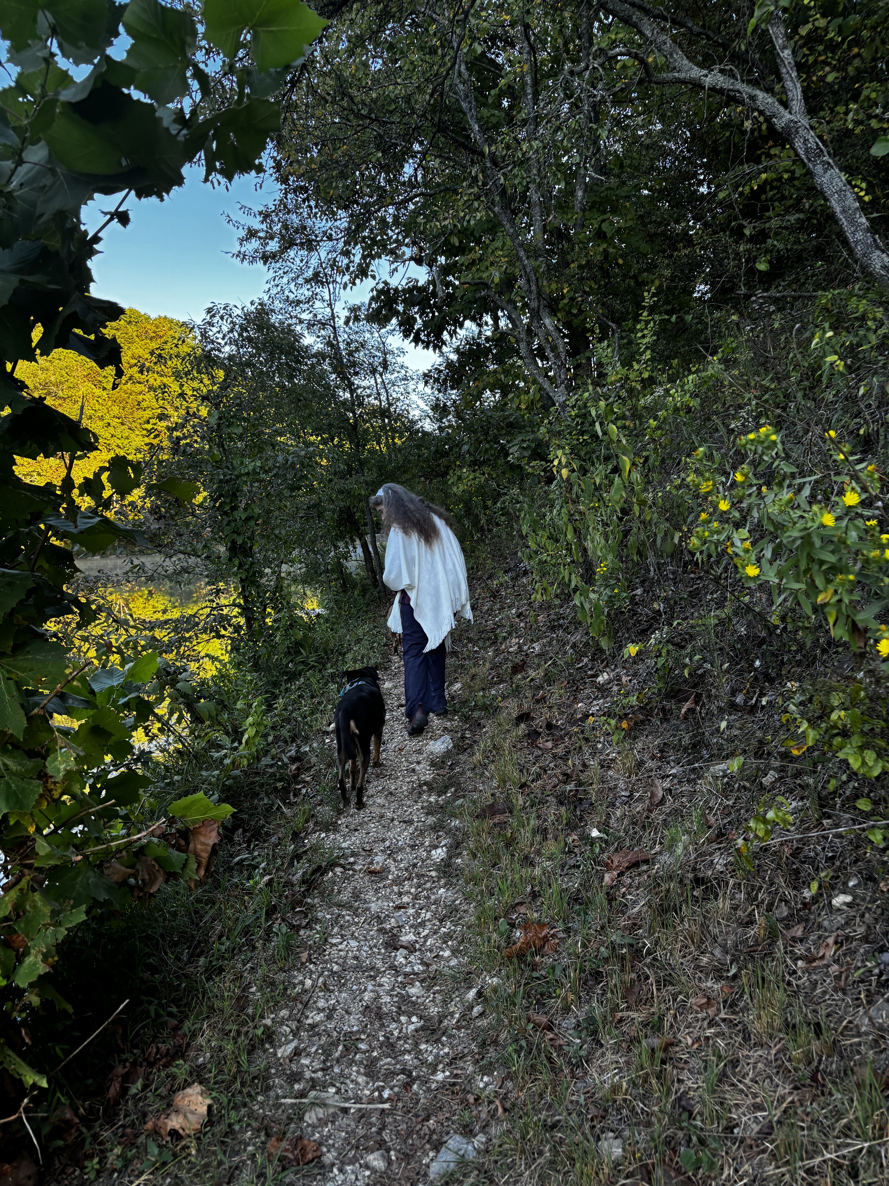 I leave the well, touching the bright standing stone at the exit. Darkness is now complete. My partner waits at the bench at the crossroads. I sit next to him for a few minutes in companionable silence. Then he walks off to the well and I find myself alone in the big circle, lighter and more clear. I’m determined to meet these next few seasons with poise, and to write about my small contributions to the unfolding events ahead.